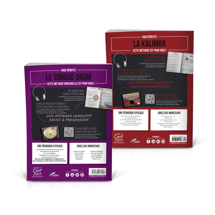 Il comprend une méthode de Tongue Drum multi-tonalités détaillée pour débutants ainsi qu’une méthode de Kalimba accessible à tous. Idéal pour celles et ceux qui souhaitent exprimer leur créativité ou simplement jouer des mélodies harmonieuses et incontournables !