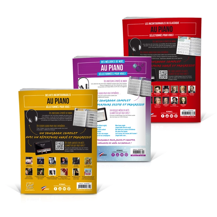 Ces trois songbooks piano vous proposent un vaste choix de morceaux riches et variés. Conçu pour les pianistes débutants et intermédiaires, ce pack vous fera voyager à travers les différentes périodes et styles d’interprétation musicales. Pensé pour une progression claire et progressive, ce programme vous permettra d’enrichir votre jeu et de maîtriser les techniques avancées. Apprenez le piano de façon efficace et motivante. Une idée cadeau pour les pianistes !